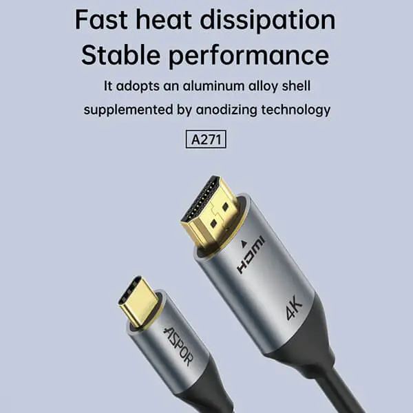 ASPOR A271 Type C to HDMI Cable 2M 4K 30Hz – Reliable Type C to HDMI Cable for High-Resolution Display