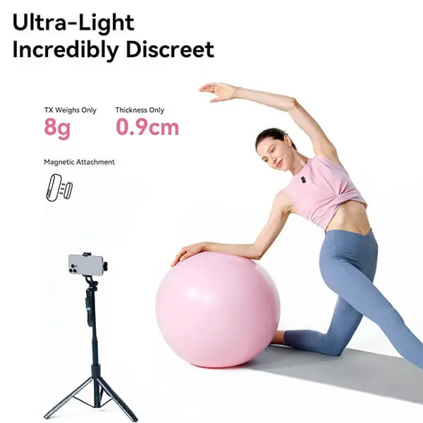 Each transmitter weighs only 8g, offering 9 hours of runtime, while the included charging case provides multiple recharges for extended shooting sessions. Whether you’re filming outdoors, recording podcasts, or streaming live, the LARK A1 ensures your voice stays natural, detailed, and interference-free.
