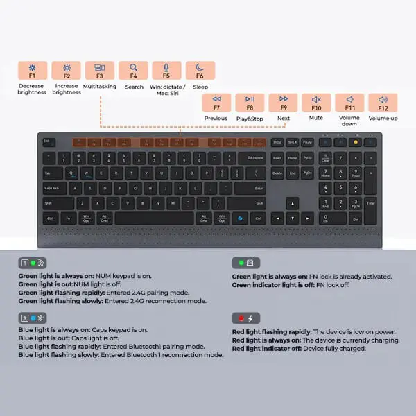 The keyboard keys are silently designed, whether in a quiet office, studying in the library, or working late at night, which will create a comfortable keystroke environment for you. - System Compatible