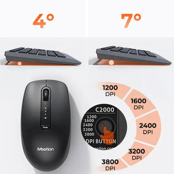 MEETION C2000 Wireless Keyboard and Mouse Features: