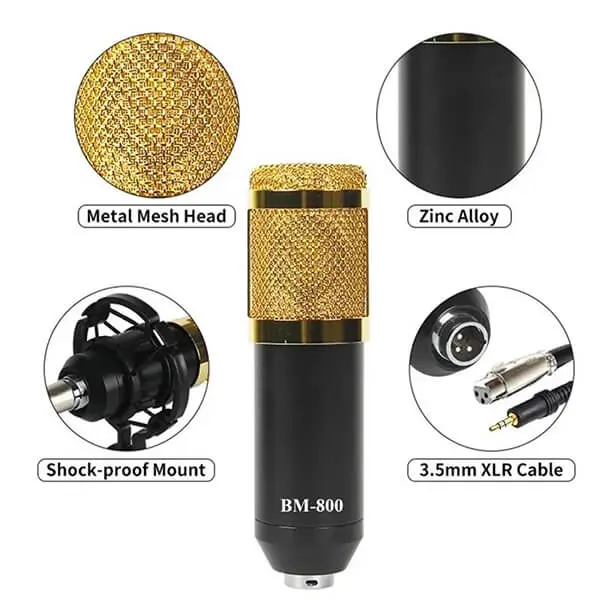 - Microphone: BM800 condenser mic with high-sensitivity pickup